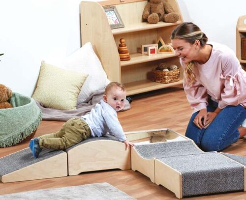Area dedicata a movimento, percezione e sviluppo motorio con percorsi, elementi soft e stimoli sensoriali.