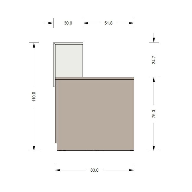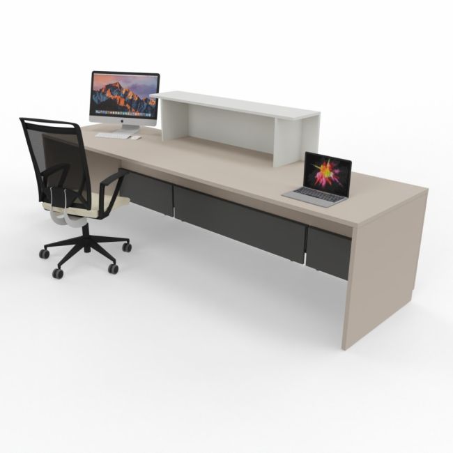 CLASS02 bancone reception prof. 80 composto da 3 elementi e mensola frontale con illuminazione a LED inclusa