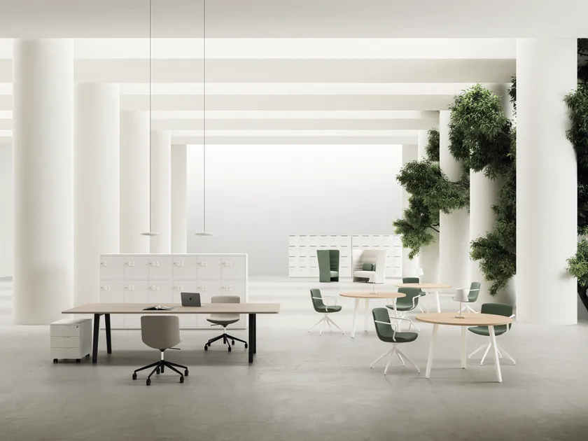 E-Place è un tavolo da riunione in melaminico e metallo che fa parte dell’omonima collezione composta da tavoli scrivania, tavoli riunioni, tavoli dattilo e bench, disponibili nella versione indipendente o collegabile in linea.