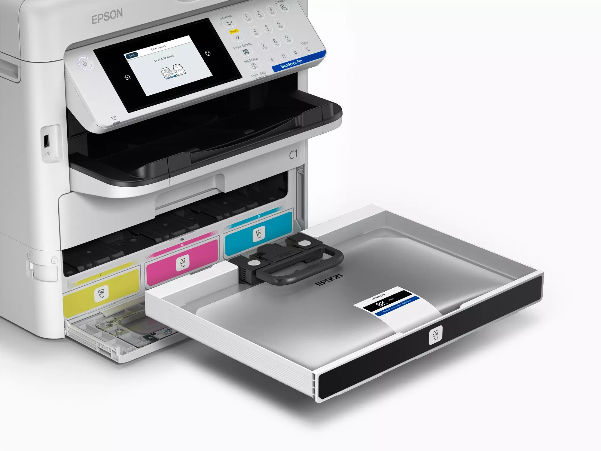 • Pensata per le aziende Compatta con rendimento dell’inchiostro fino a 50.000 pagine in bianco e nero4 e 1.830 pagine di capacità carta