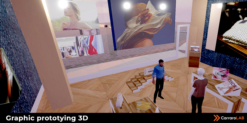 Il laboratorio si basa su una soluzione immersiva dedicata agli studenti degli istituti professionali a indirizzo Grafica e Comunicazione, pensata per favorire la prototipazione rapida e visuale in realtà aumentata e virtuale. In uno spazio virtuale personalizzabile accessibile da visori VR, browser o dispositivi mobili, gli studenti possono caricare modelli 3D di oggetti grafici come confezioni, espositori, riviste o schermi digitali e inserirli in un ambiente tridimensionale rappresentativo del contesto espositivo o commerciale. Ogni oggetto può essere personalizzato nei colori e nei materiali, e arricchito con elementi visivi come loghi, immagini, testi e poster, caricabili direttamente nella scena. All’interno dell’ambiente di Spatial.io, è possibile organizzare i materiali in moodboard 3D navigabili, veri e propri pannelli creativi spaziali dove combinare, confrontare e presentare le proprie proposte grafiche. Questo approccio consente di valutare il progetto nel suo impatto visivo complessivo, migliorando il processo di ideazione e permette ai docenti di seguire gli studenti anche a distanza, commentando e guidando l’evoluzione dei progetti in tempo reale. La soluzione rende l’apprendimento più coinvolgente e concreto, stimolando la creatività visiva e la capacità di comunicazione attraverso un’esperienza immersiva e collaborativa coerente con i linguaggi contemporanei della progettazione grafica.