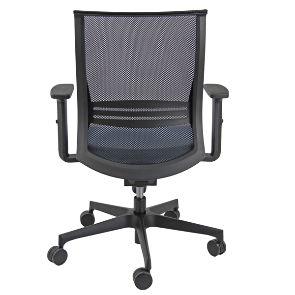 Seduta semidirezionale ergonomica girevole con elevazione a gas meccanismo oscillante con blocco. Dotata di supporto lombare regolabile. Rivestimento in tessuto “PLUS – Bondai” 100% poliestere no flame e certificazioni di infiammabilità 1.IM UNI 9175. Completa di braccioli regolabili. Alt.tot.: 117-127cm; Prof.tot.: 68cm; Alt.schienale: 52cm; Larg.schienale: 48cm; Larg.seduta: 48cm; Prof.Sedile: 48cm; Alt. sedile: 42-53cm.